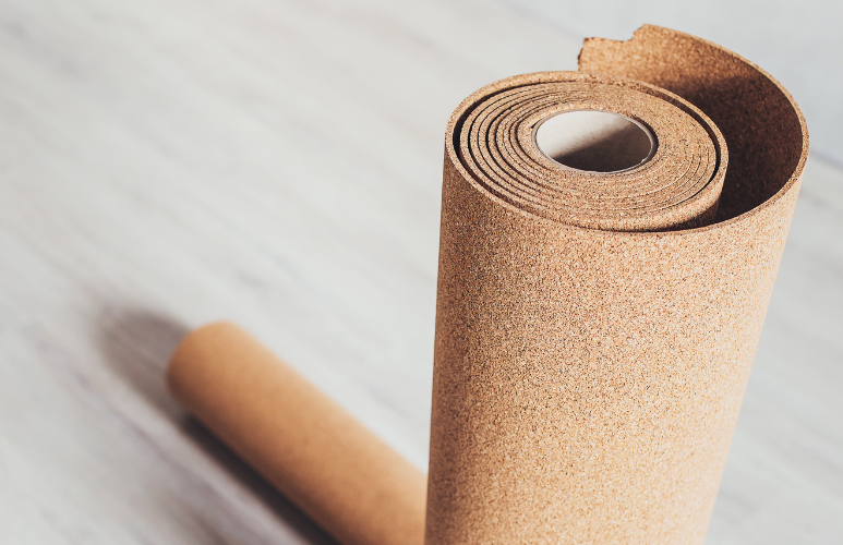 Wygłuszenie pomieszczenia o nierównym podłożu – korek jest elastyczny i pozwala wyrównać drobne nierówności, co ułatwia montaż paneli na nierówną podłogę.
