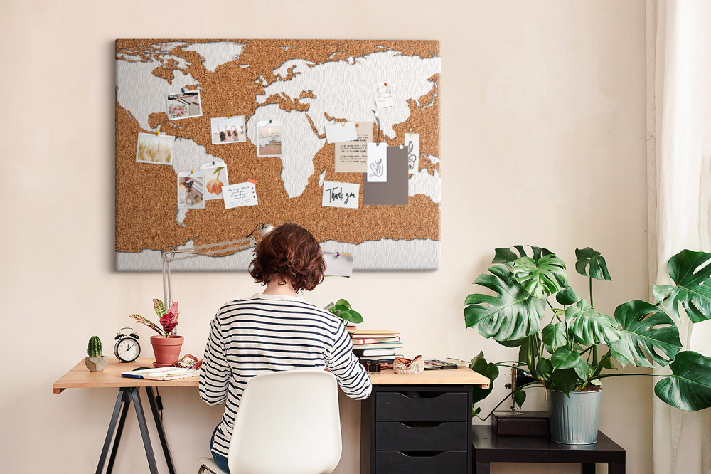 Miejsce na notatki i organizację. Jeśli chcesz, aby tablica korkowa pełniła bardziej praktyczną funkcję, możesz zorganizować na niej przestrzeń na notatki, listy zadań czy plan na nadchodzący tydzień. Możesz także stworzyć strefy tematyczne, przypinając różne rzeczy w określonych miejscach. Użyj pinezek lub specjalnych klipsów do organizacji, aby notatki były zawsze w zasięgu wzroku. To idealne rozwiązanie do biura lub pokoju ucznia.